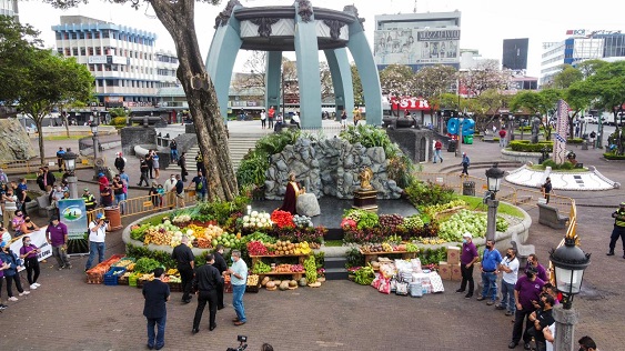 Los mercados de la capital donaron alimentos este miércoles en el traidicional huerto de Semana Santa que se realiza desde hace varios años en el Parque Central de San José.